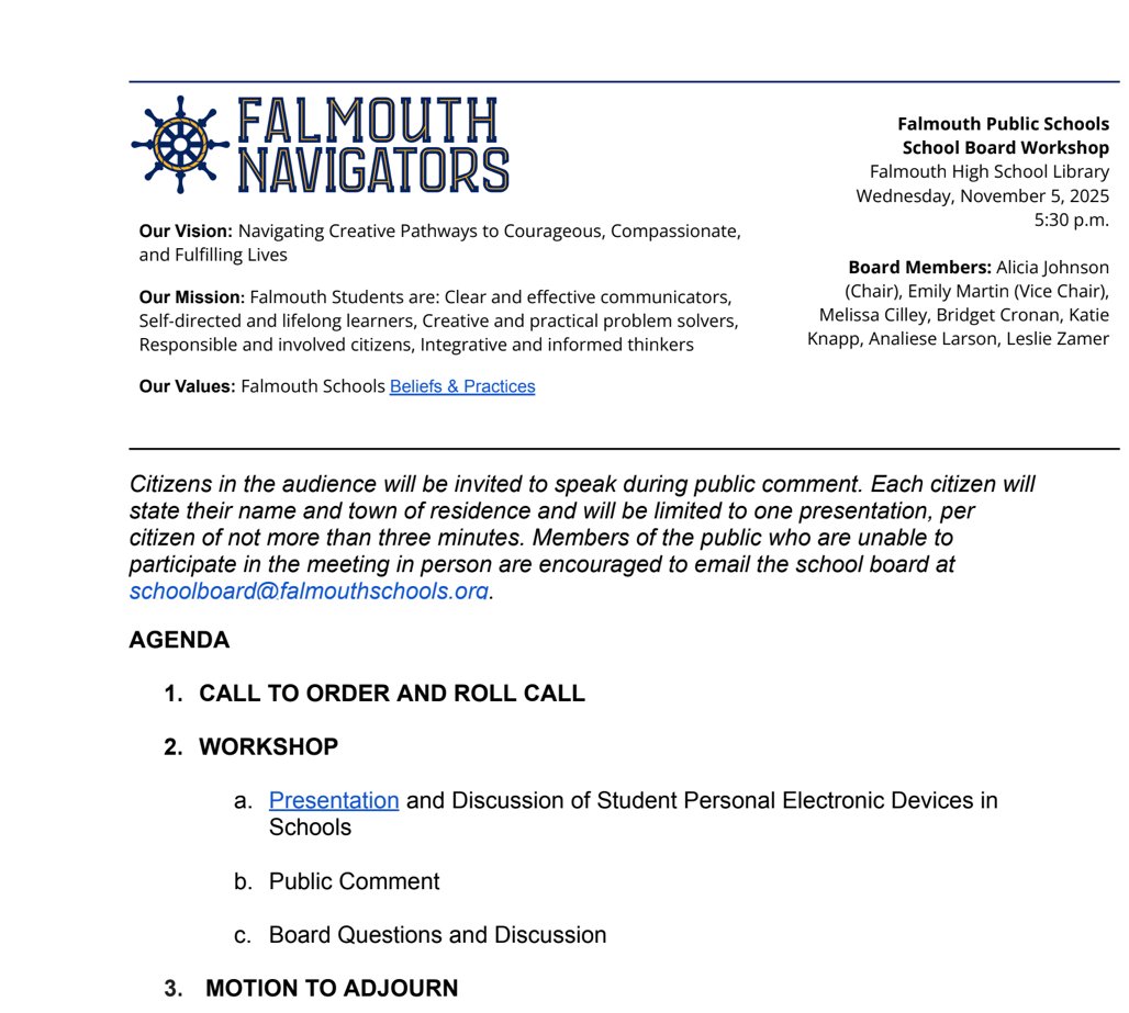 School Board Meeting to discuss “Student Personal Electronic Devices in Schools”